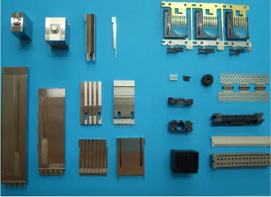 微細コネクター向け、金型の部品加工に特化し、その中で培った加工技術が強み、小物・微細加工を得意とする。幅0.1㎜の溝加工や、厚み0.1㎜以下の薄板加工に於いて±0.001㎜の精度を補償します。近年は異業種参入を視野に幅広い業種の部品加工に取り組んでおります。